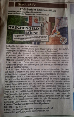 Dieses Angebot erfolgt in Kooperation mit der Stadt, der Sorgenden Gemeinschaft und engagierten Bürgern der Stadt Gau-Algesheim.